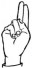 На ћирилици написано РАДНА СРЕЈИЋ састоји се из 11 слова [?]. Исписано ћириличном једноручном азбуком за глувонеме: